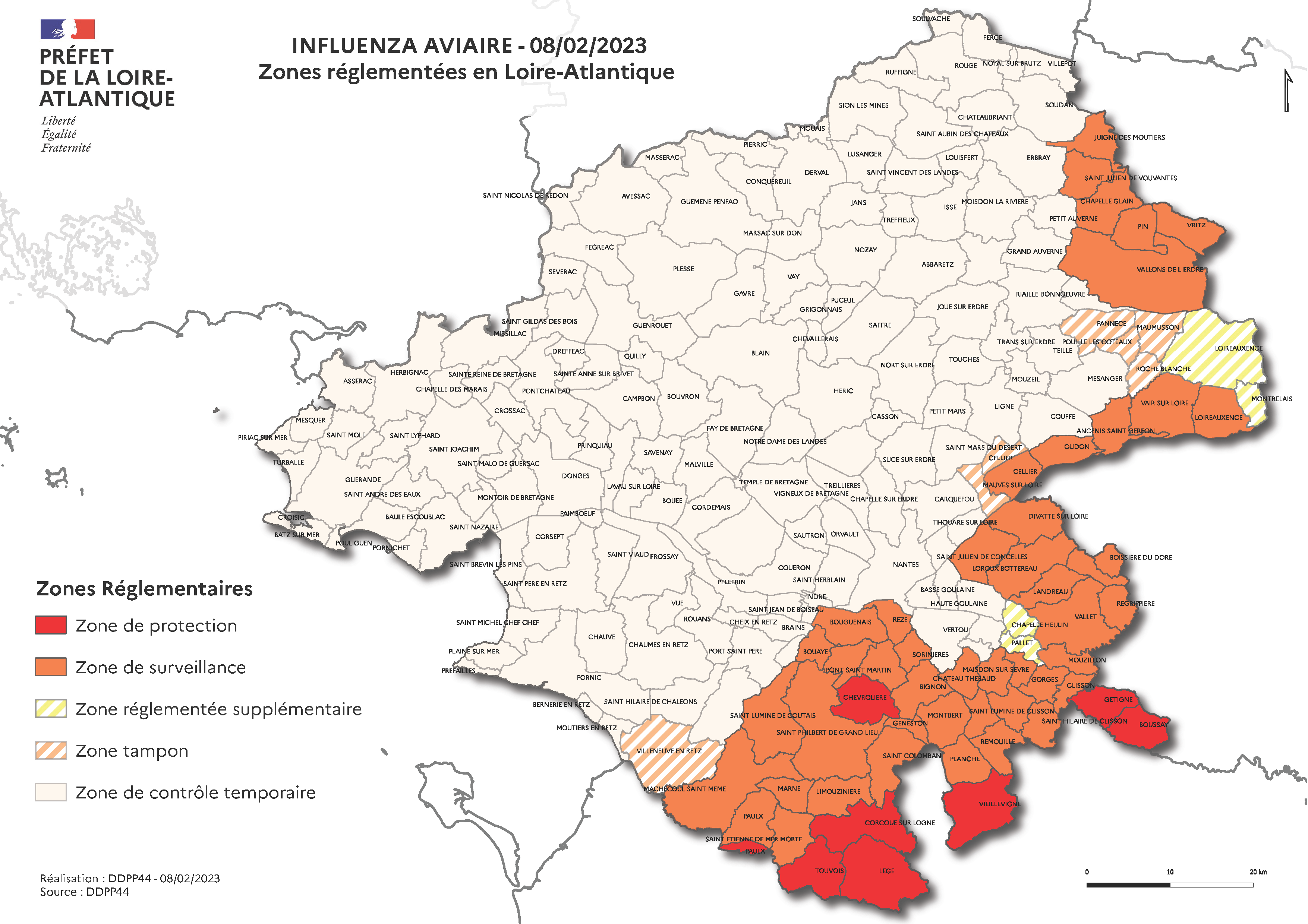 Mesures concernant les activités cynégétiques dans les zones de protection et de surveillance • Le mouvement et le lâcher de gibiers à plumes de la famille des phasianidés et anatidés sont interdits; • Le transport et l'utilisation des appelants pour la chasse au gibier d'eau sont interdits. • Sont interdites la chasse au gibier d'eau ainsi que la chasse au gibier à plumes en zone de chasse maritime, dans les marais non asséchés, sur les fleuves, rivières, canaux, réservoirs, lacs, étangs et nappes d'eau; • La cession à titre gratuit ou onéreux des corps du gibier à plumes tué par action de chasse et des viandes et produits qui en sont issus est interdite dans la zone de protection ou de surveillance.